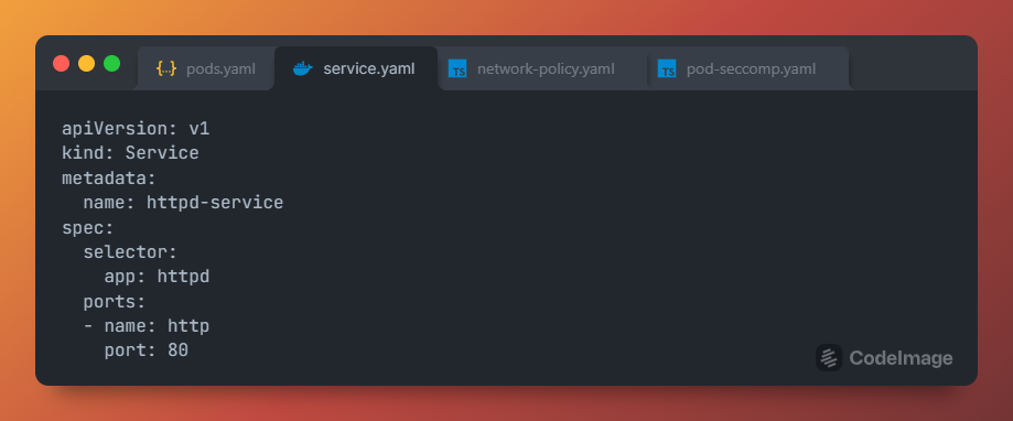 servicefor theserverthat exposes thehttpdserver on port 80.