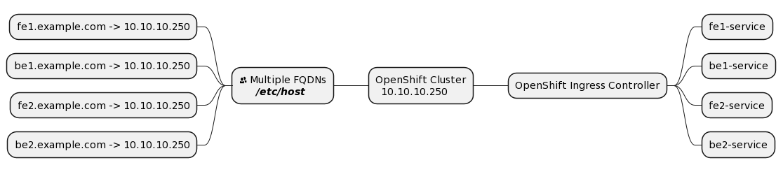 In my experience working with a private OpenShift cluster, we often used "Routes" to provide external access to services within the cluster. However, an intriguing question arose when my colleague asked why we needed to add records to the /etc/hosts/ file if all FQDNs were resolved to the same IP address, such as be1:8080, fe1:3000, be2:8080, and fe2:3000 --> 10.10.10.250. To address this, we explored the technical workings behind OpenShift Ingress and its handling of FQDNs and resolved IPs.